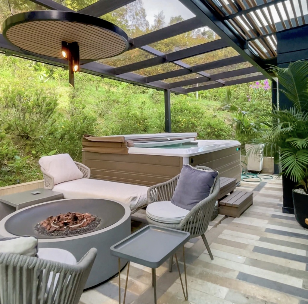 Enjoy ultimate relaxation in the private jacuzzi while taking in breathtaking panoramic views of the city and surrounding mountains. Surrounded by lush green areas, this property offers a serene and private atmosphere, perfect for those seeking a blend of nature and luxury.