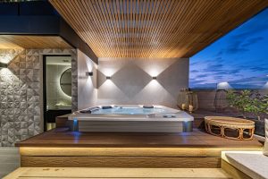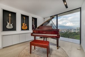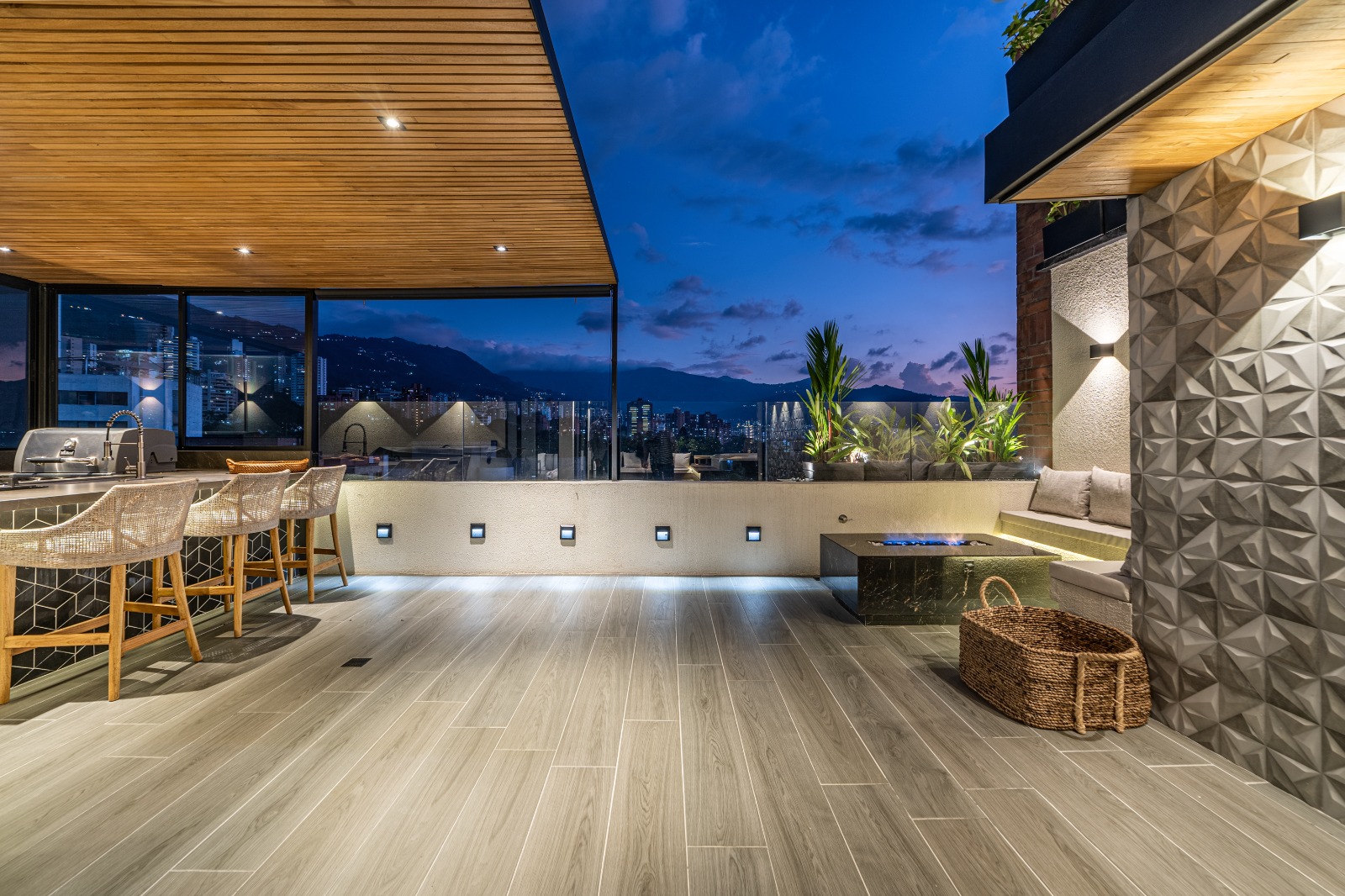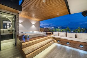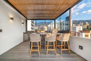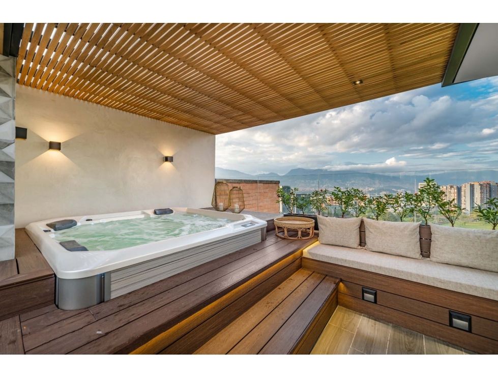 The terrace features an elegant jacuzzi, perfect for relaxing and enjoying Medellín’s breathtaking sunsets.