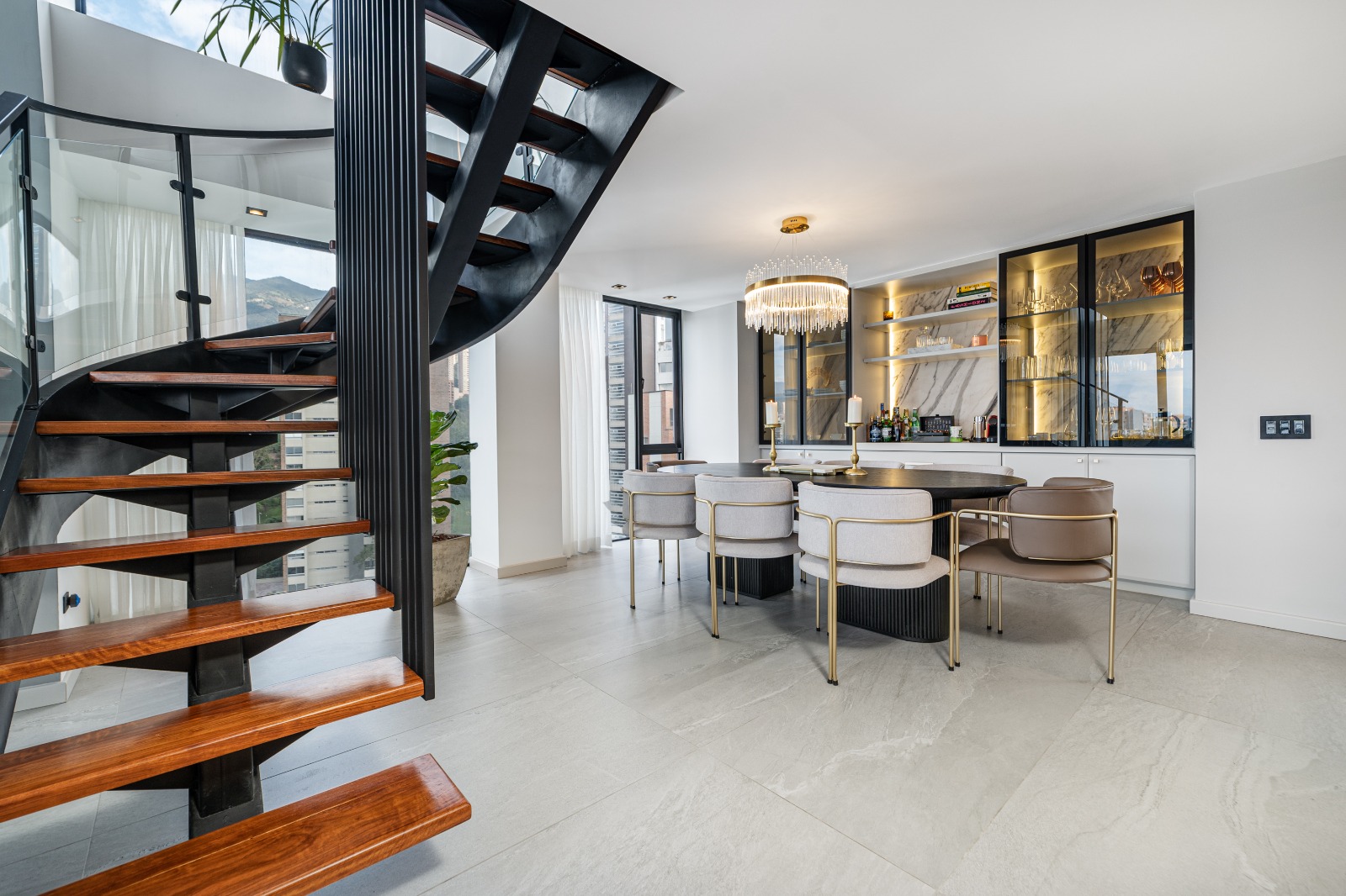 This property stands out for its modern design, open spaces, and an impressive private terrace offering panoramic views of the city.
